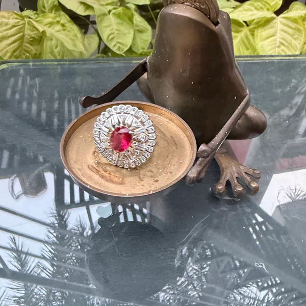 Flower Ruby Silver Ring | BLINGARI | BLINGARI